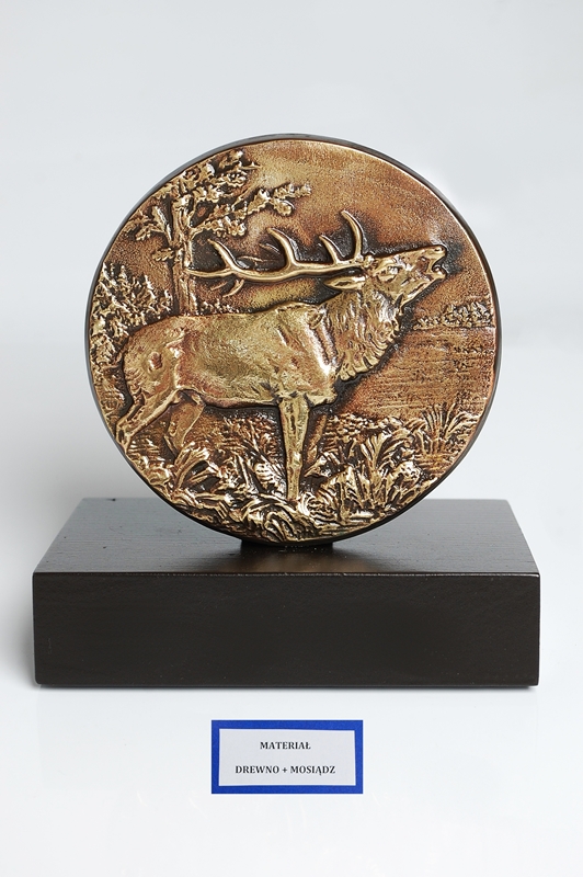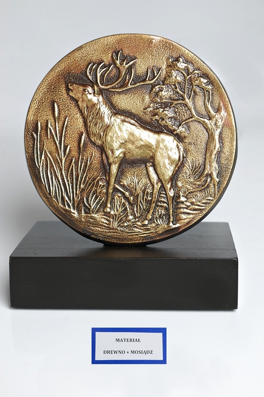 Opis: Jeleń ryczący - płaskorzeźba na drewnie